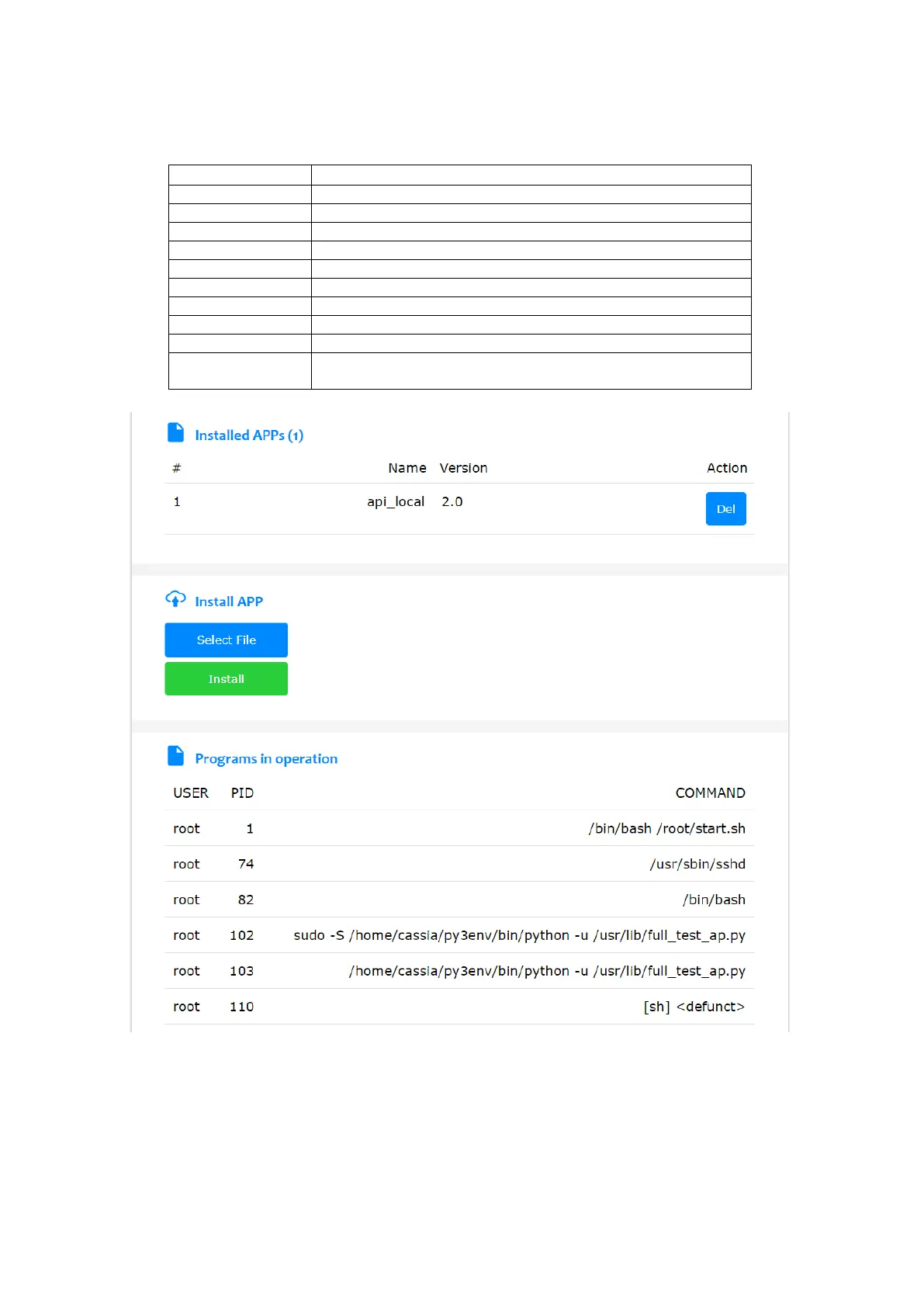 The user can update the APP by clicking the button “Select File and Install”. From firmware