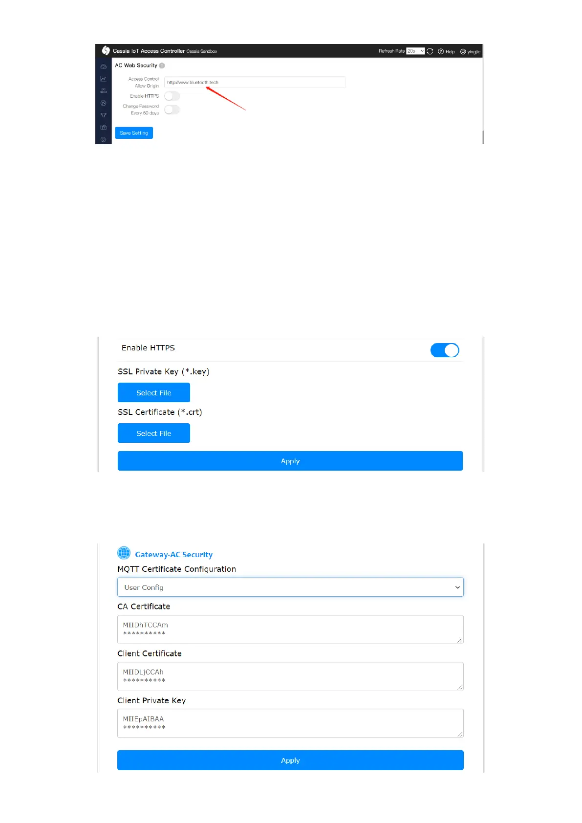If you want to use HTTPS to access the gateway web or call local RESTful API, please switch