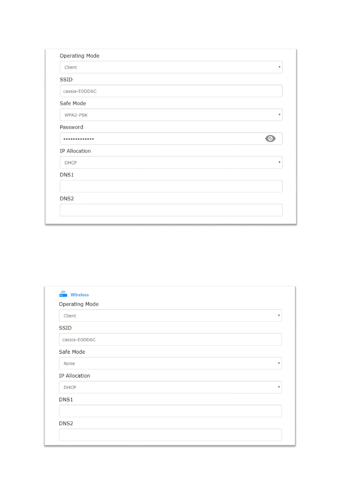If a password is not needed, the user should set “Safe Modeto None. In this case, only SSID