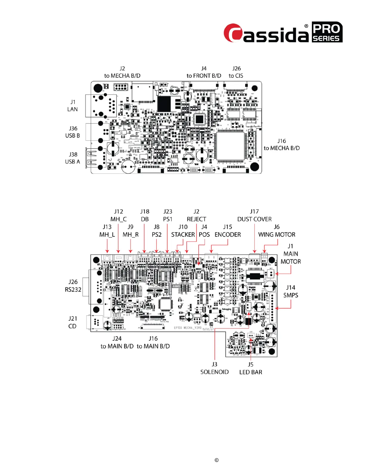 Cassida PRO Zeus - Main PBA Connector Detail; Mecha PBA Connector Detail