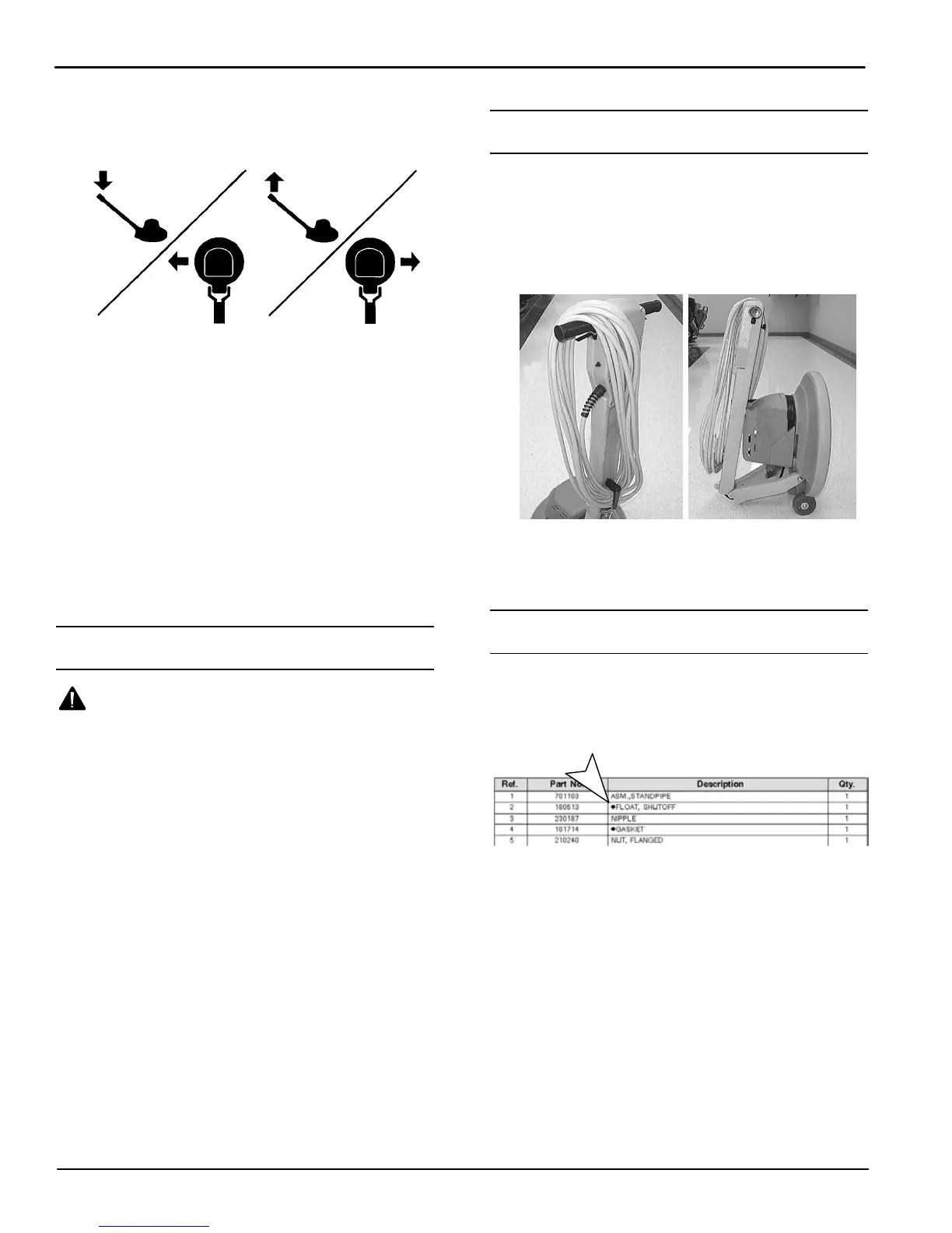 3. To move machine left (A), slightly lower handle. To