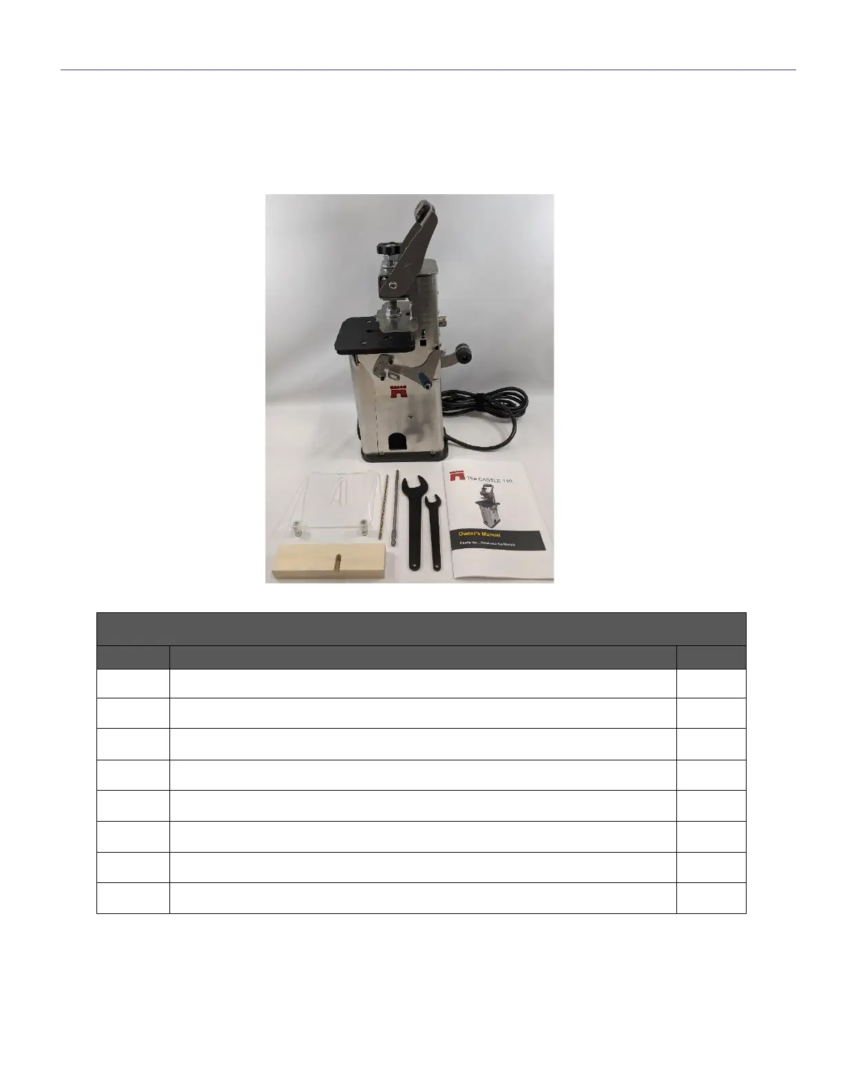 THE CASTLE-110 PORTABLE POCKET MACHINE PACKING LIST