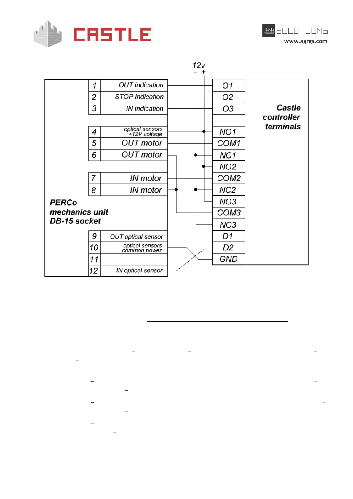 To connect the control panel, see Sec. 9.6.11 Connecting PERCo turnstile control panel.