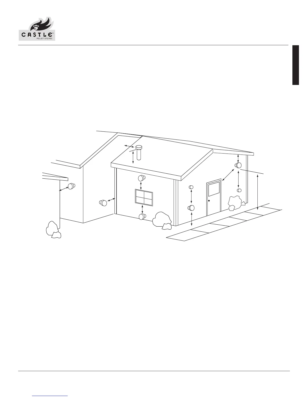 • The stove vent must terminate on the outside of the building. Horizontal terminations must extend a minimum