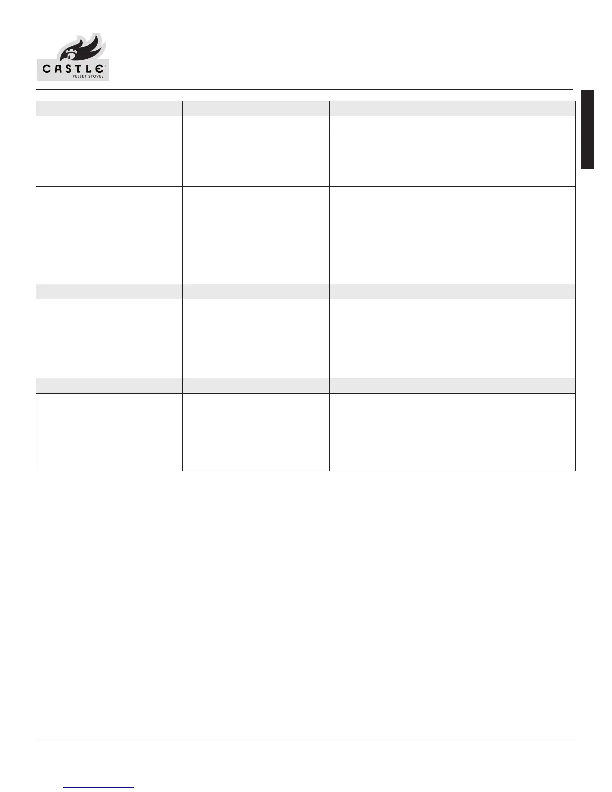 Check for parts online at www.castlestoves.com or call 800-450-EDGE (3343) M-F 8-5