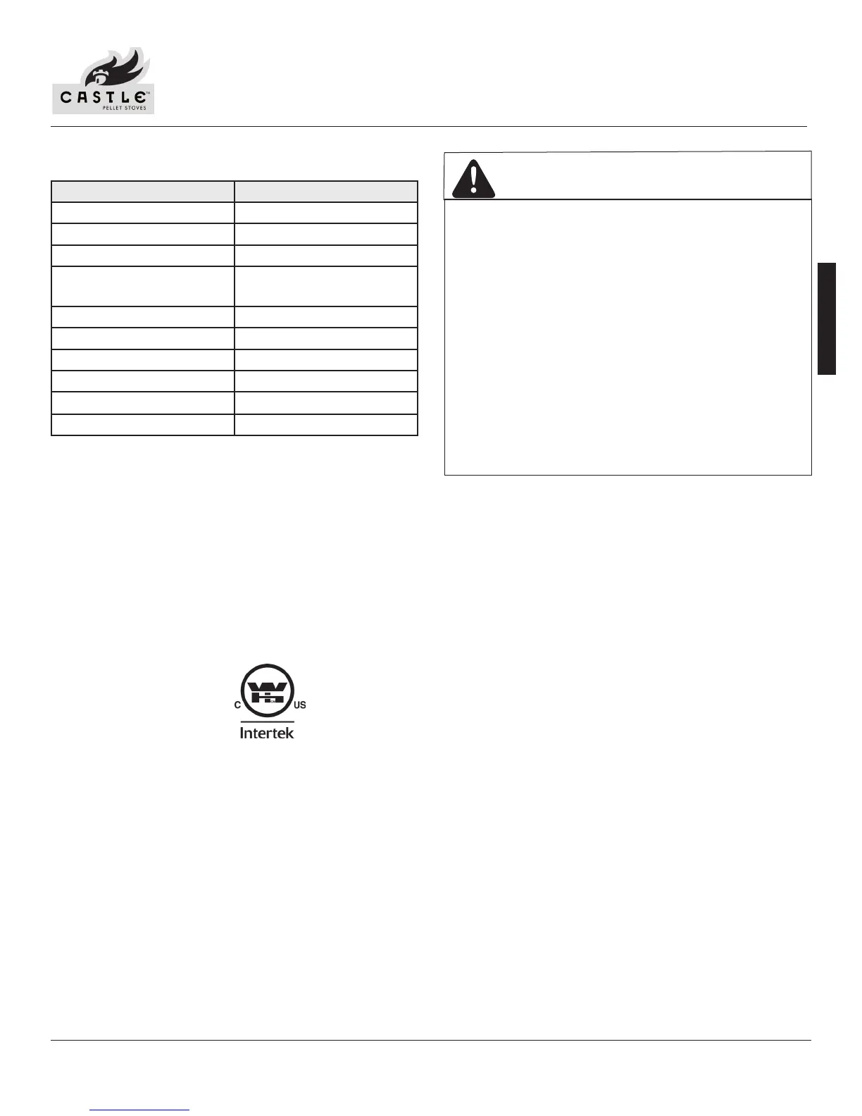 Voir les pièces détachées en ligne à www.castlestoves.com ou composer le 800-450-EDGE (3343) L-V 8h-17h