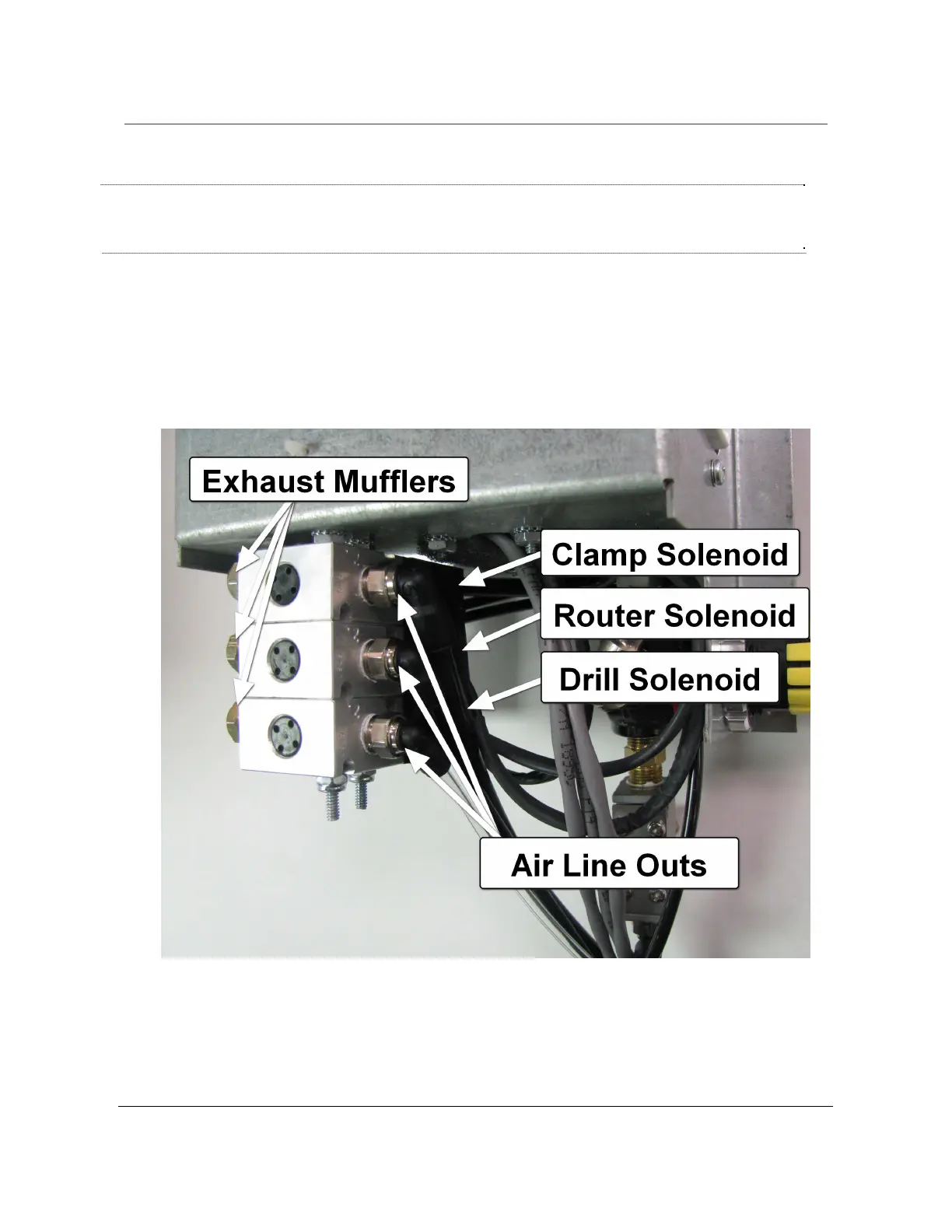 2. Remove the air out line and the exhaust muffler from the Drill solenoid and press