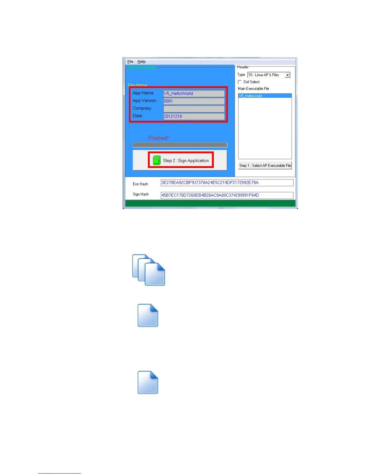Enter file details and press “Step 2: Sign Application” to sign the file.
