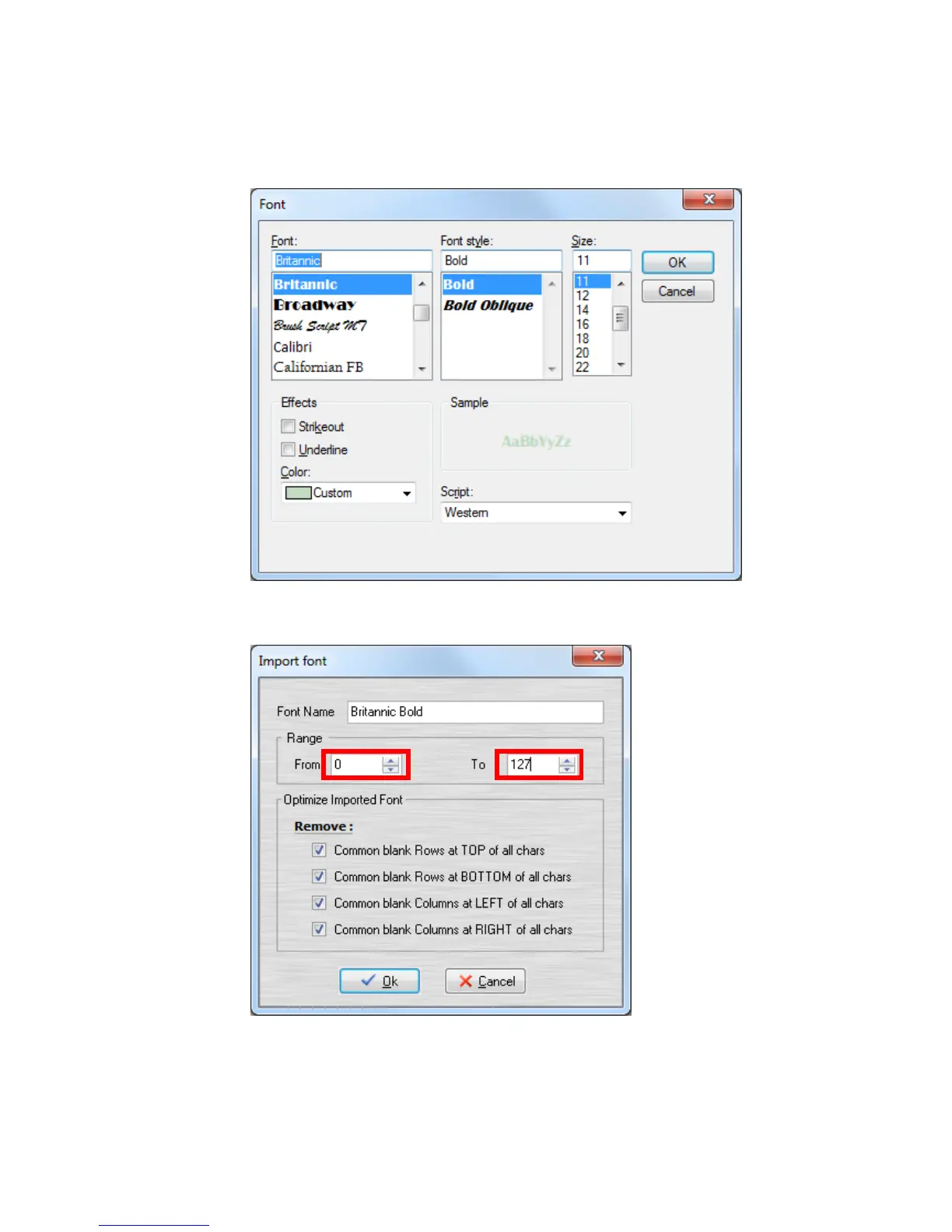 Set the import range from 0 to 127.