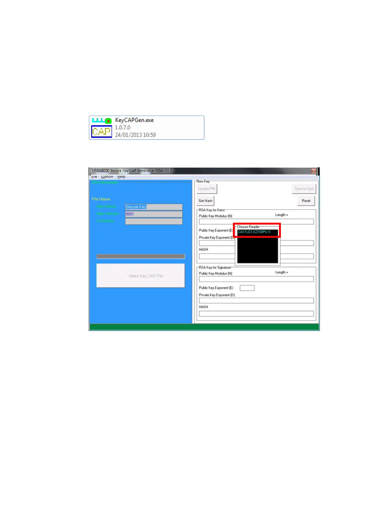 Insert Key Card and select smart card reader