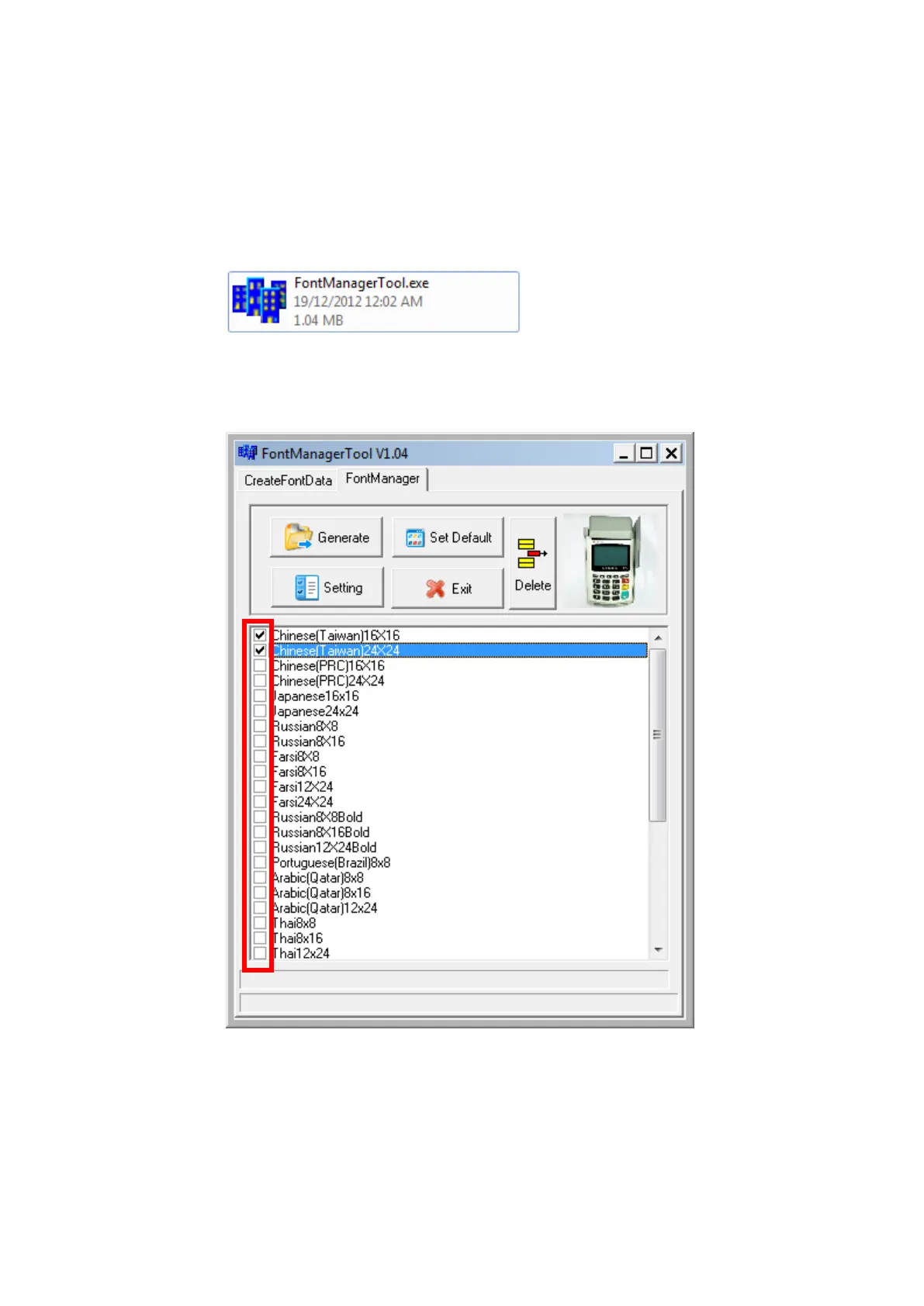 Castles Technology UPT1000F - Font Management; Loading New Font