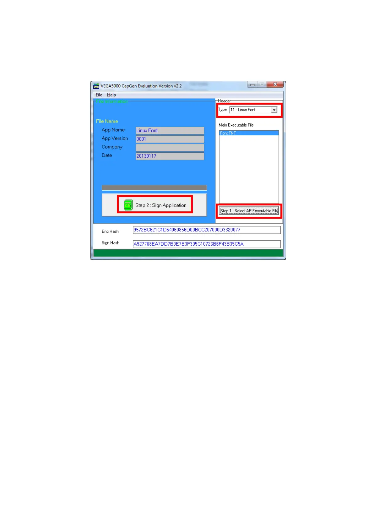 Set type to [11 – Linux Font], press [Step 1] button select the FNT file. Then