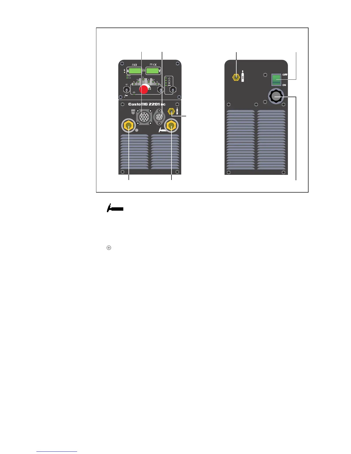 Fig.5b Connections and switches on CastoTIG 2201 DC power source (as example)