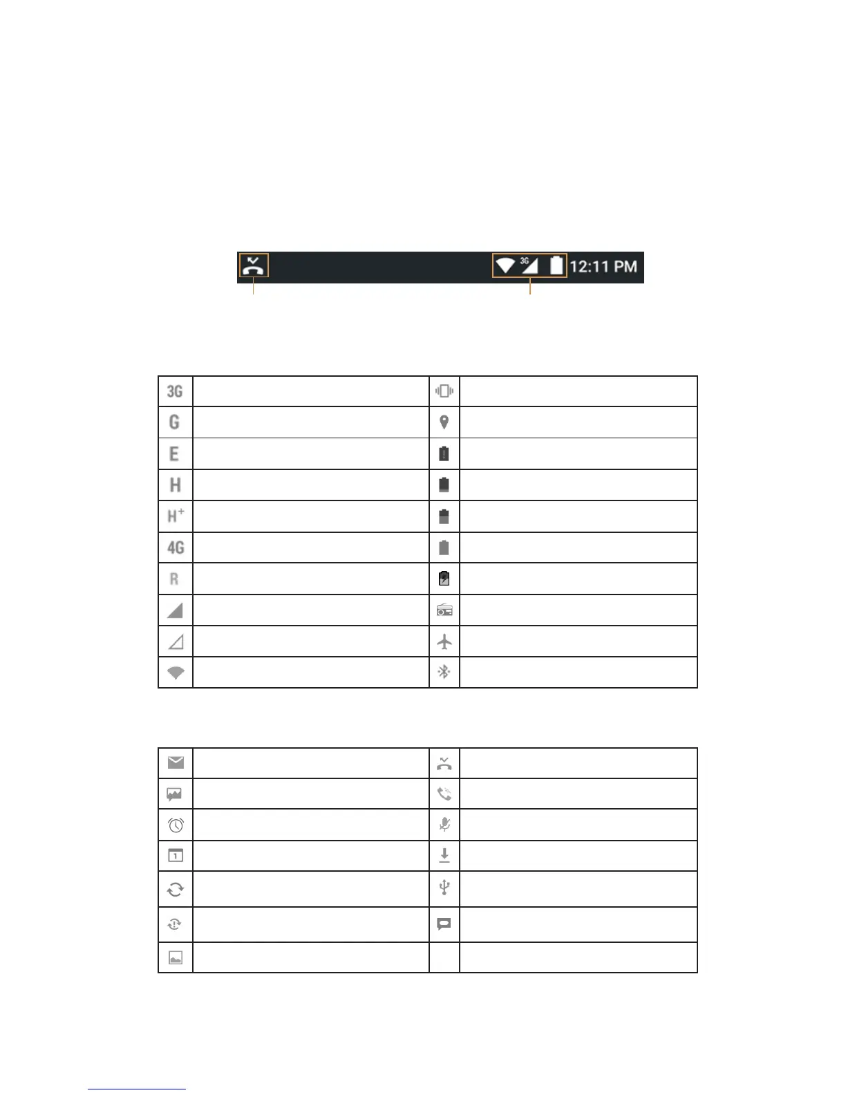 The Status bar appears at the top of every screen. This displays notication icons, such as
