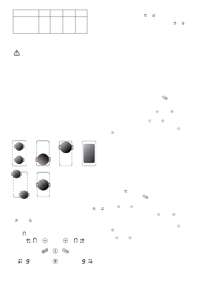 1. Válassza ki az éppen működő főzőzónát a zónaválasztó