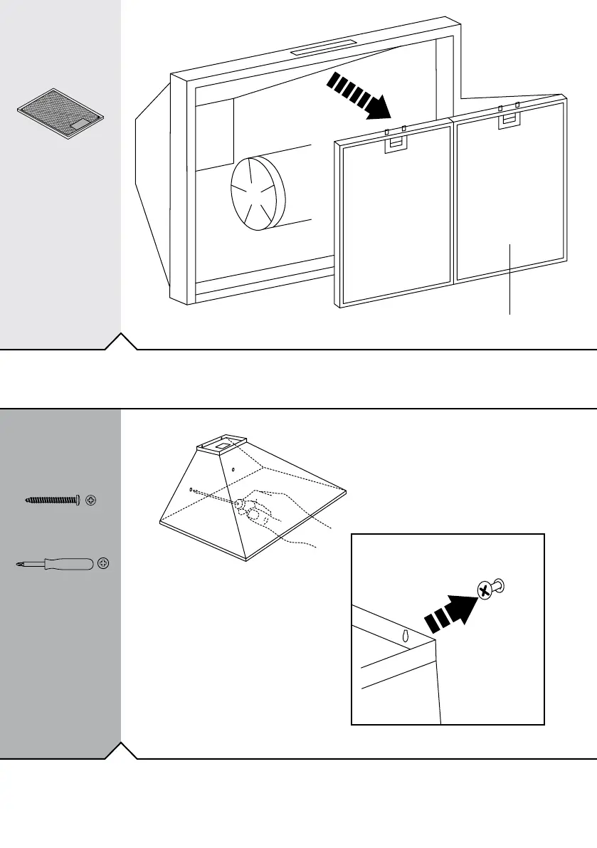 Position the hood over the top two screws then insert the bottom screws from inside the hood, tighten top 2