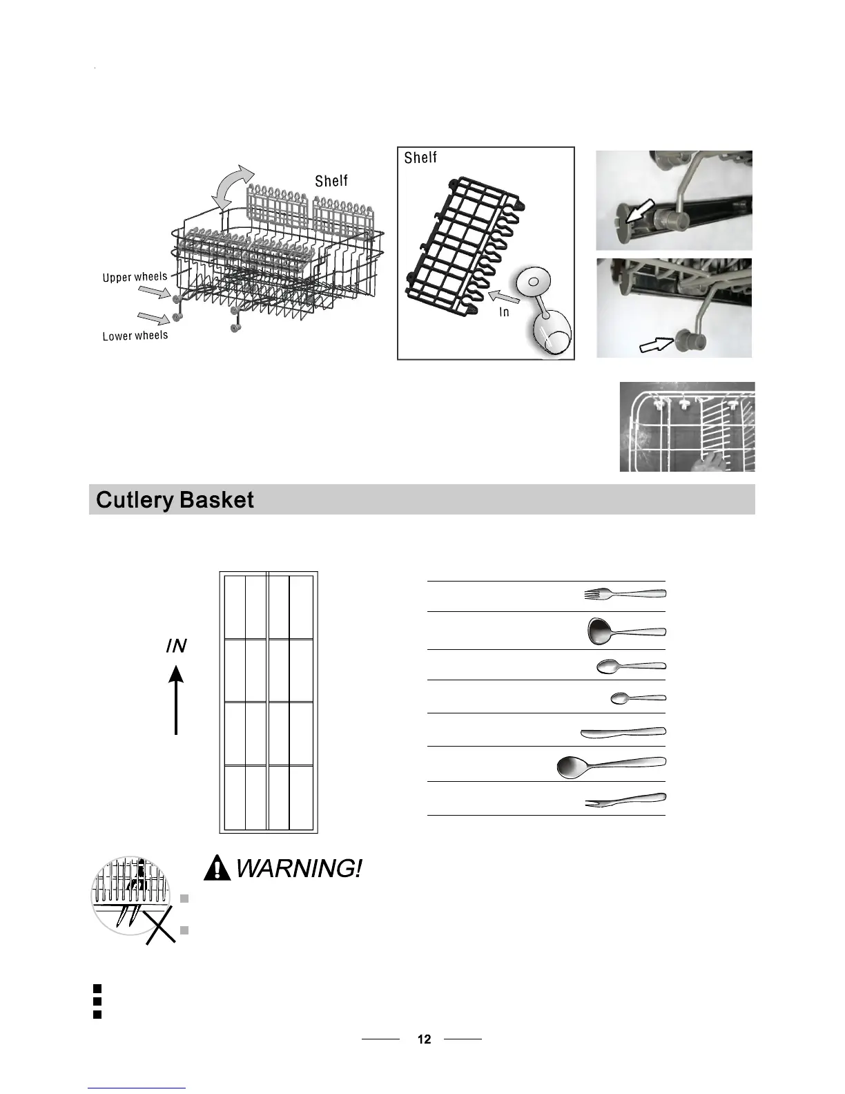 For personal safety and a top quality cleaning, place the silverware in the basket making sure that: