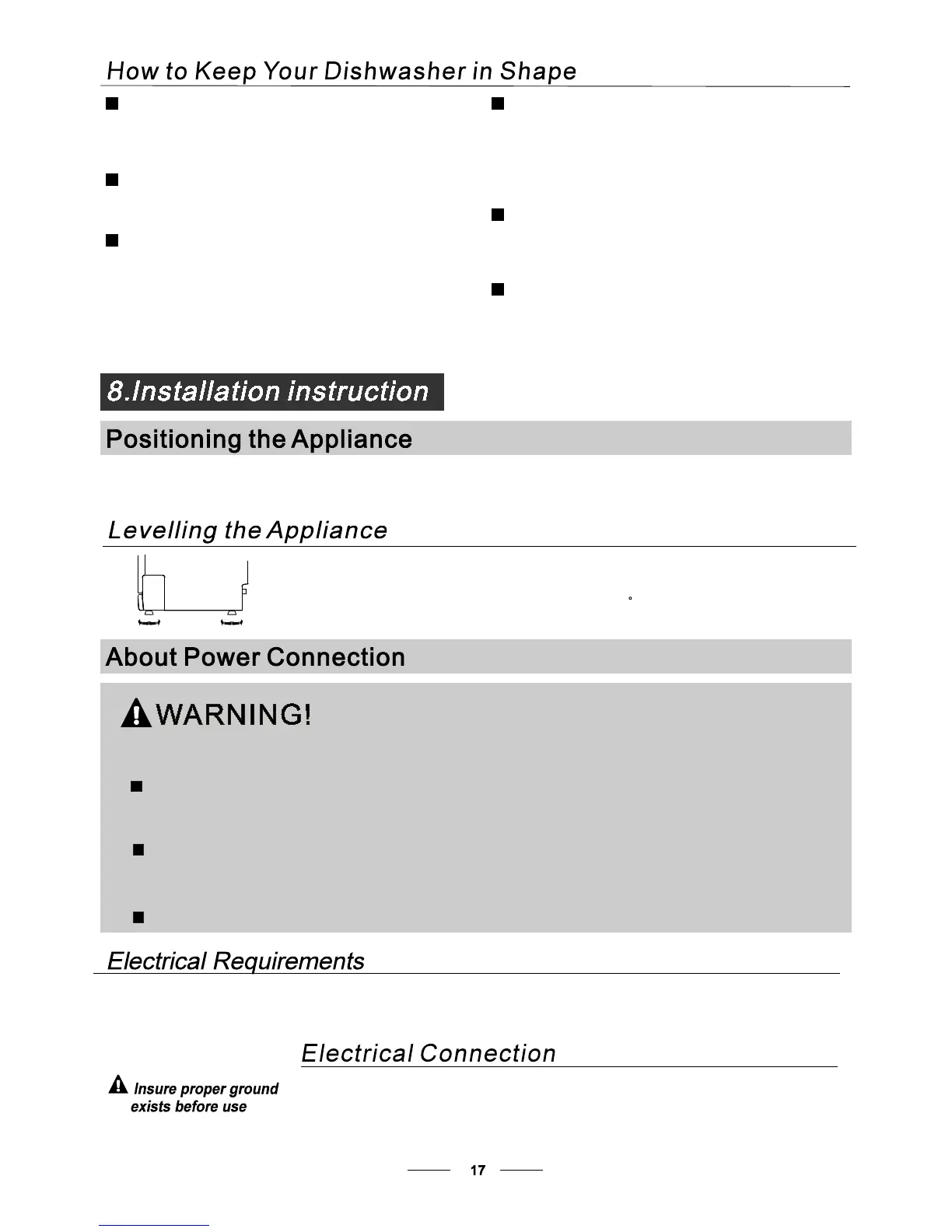 Please look at the rating label to know the rating voltage and connect the dishwasher to the appropriate power supply.