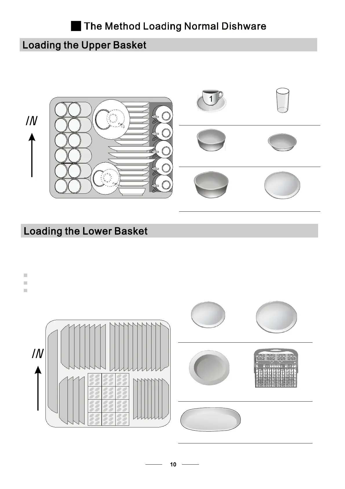We suggest that you place large items and the most difficult to clean items are to be placed into the lower basket: