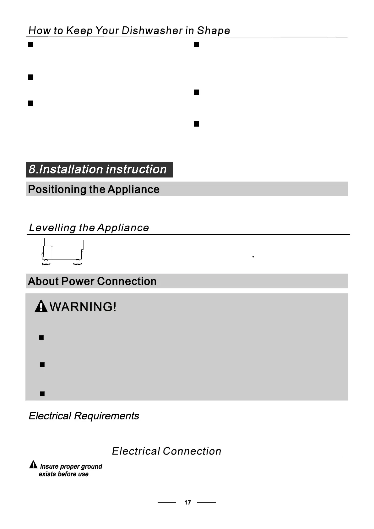 Please look at the rating label to know the rating voltage and connect the dishwasher to the appropriate power supply.