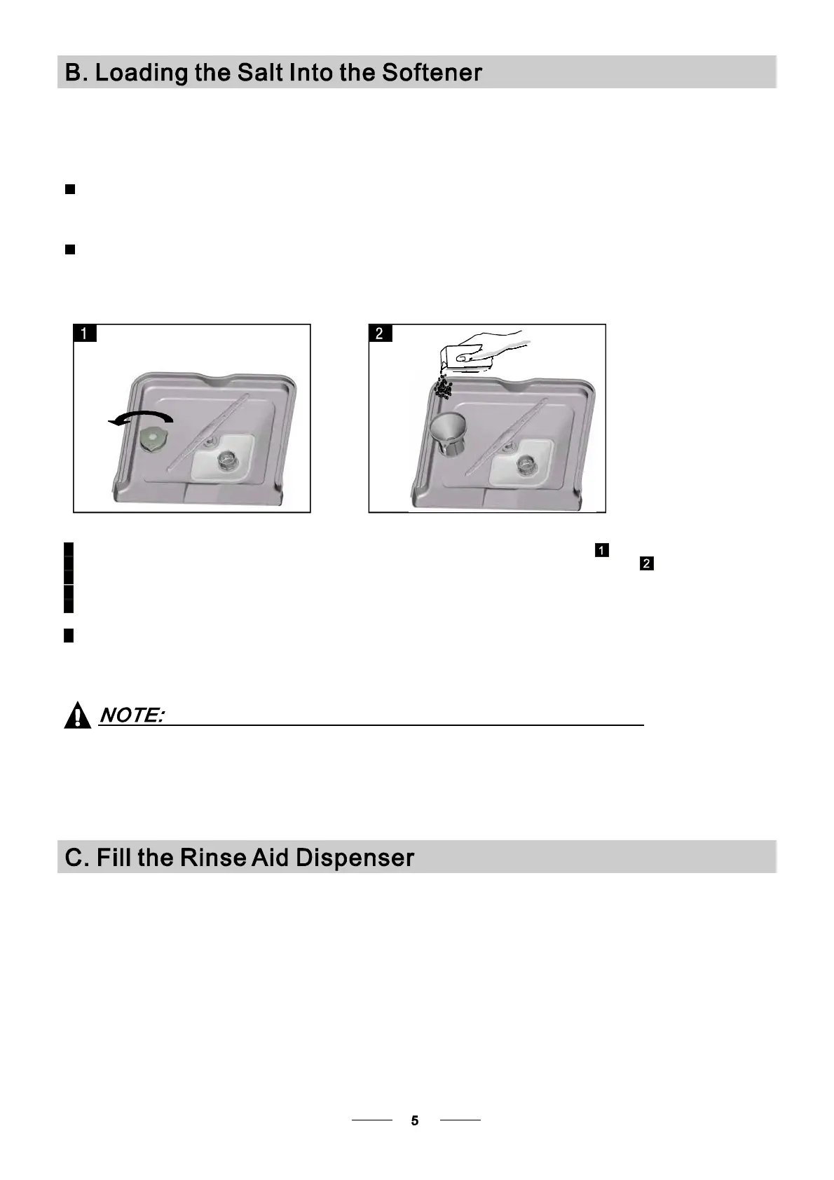 C Full fill thesalt containerwith water.It is normal for a small amount of water to come out of the salt container.
