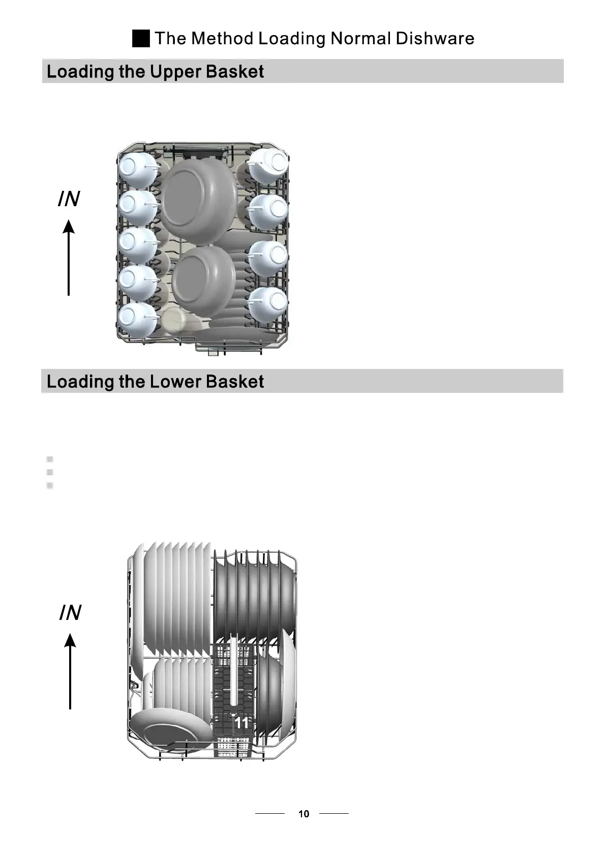 We s uggest that you plac e lar ge i tems and t he mo st d ifficu lt to clean ite ms a re to be pla ced i nto the l ower ba sket :