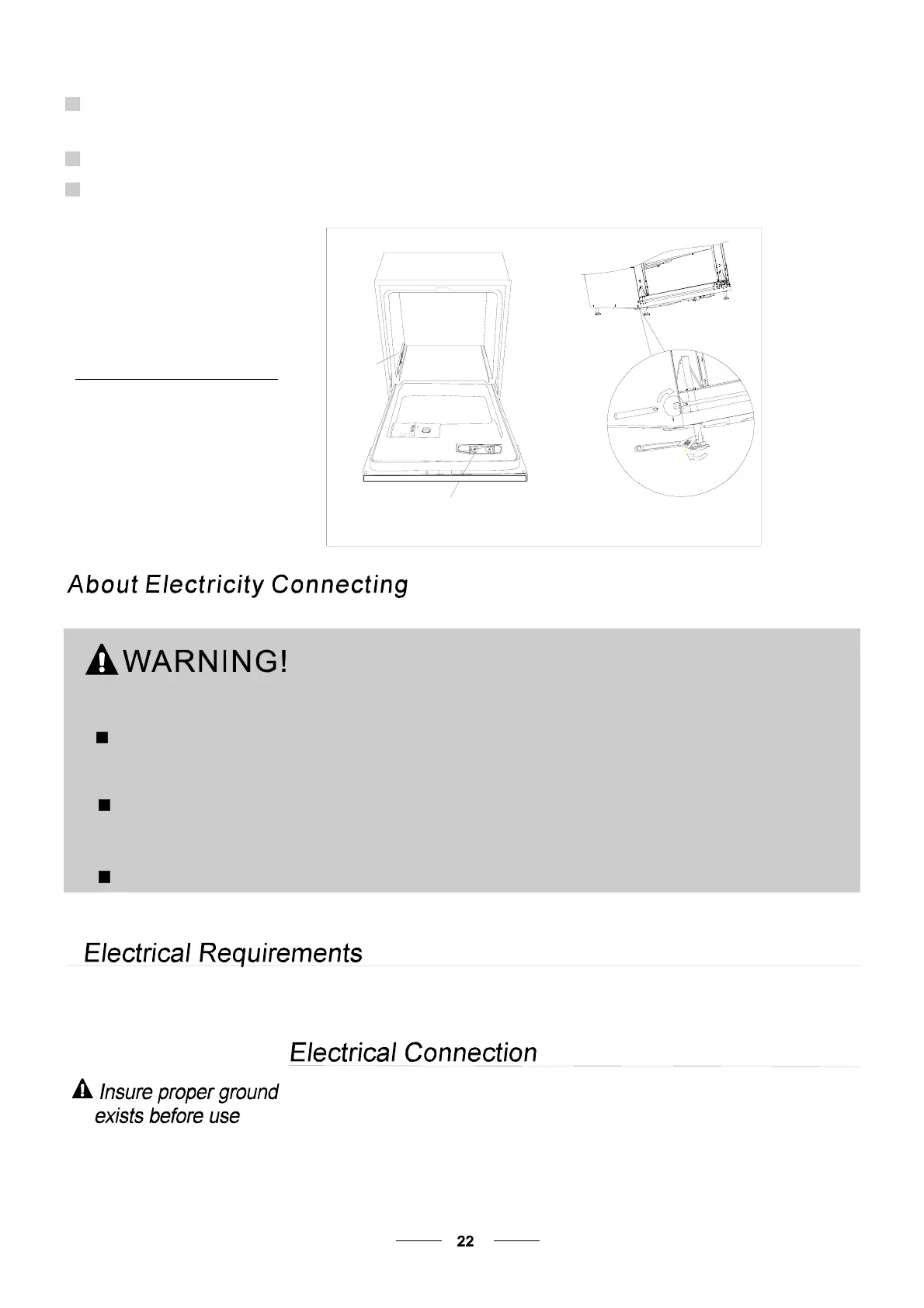 Plea se look at th e ra ting lab el t o kno w th e r ating v olta ge a nd conn ect t he d ishwash er t o t he app ropr iate power s upp ly.
