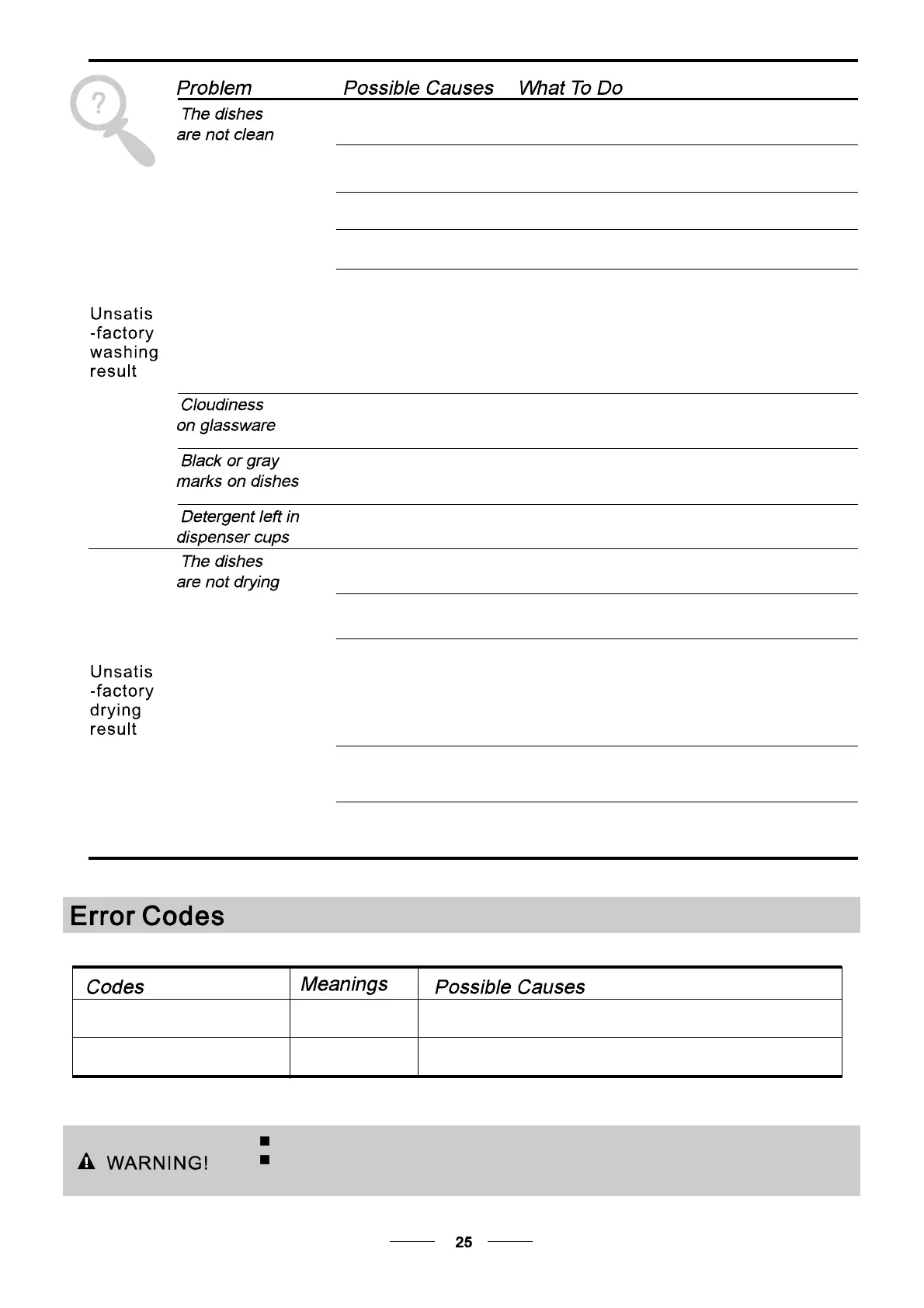 When some malfunctions come on, the appliance will display error codes to warn you: