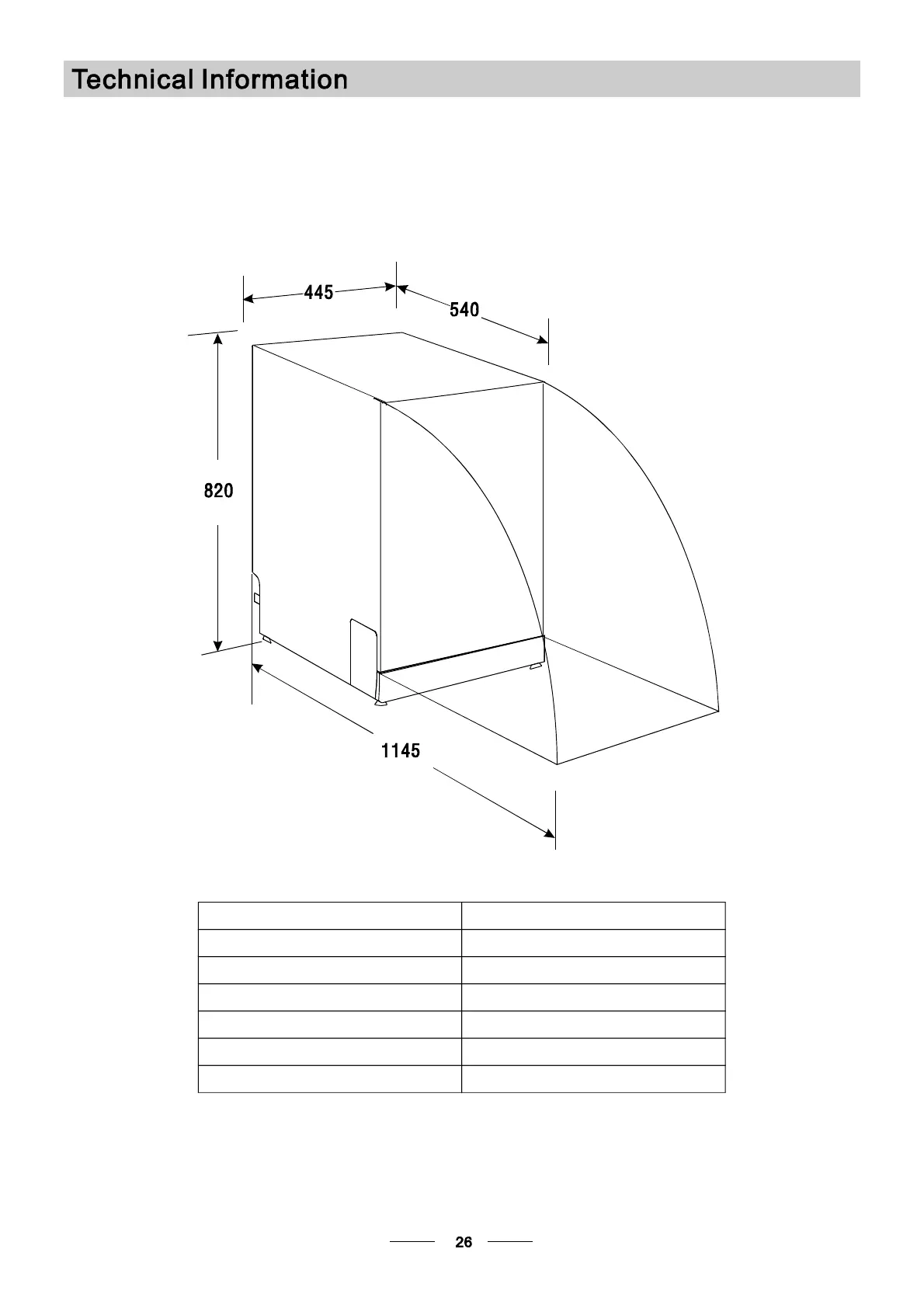 Depth : 540mm
