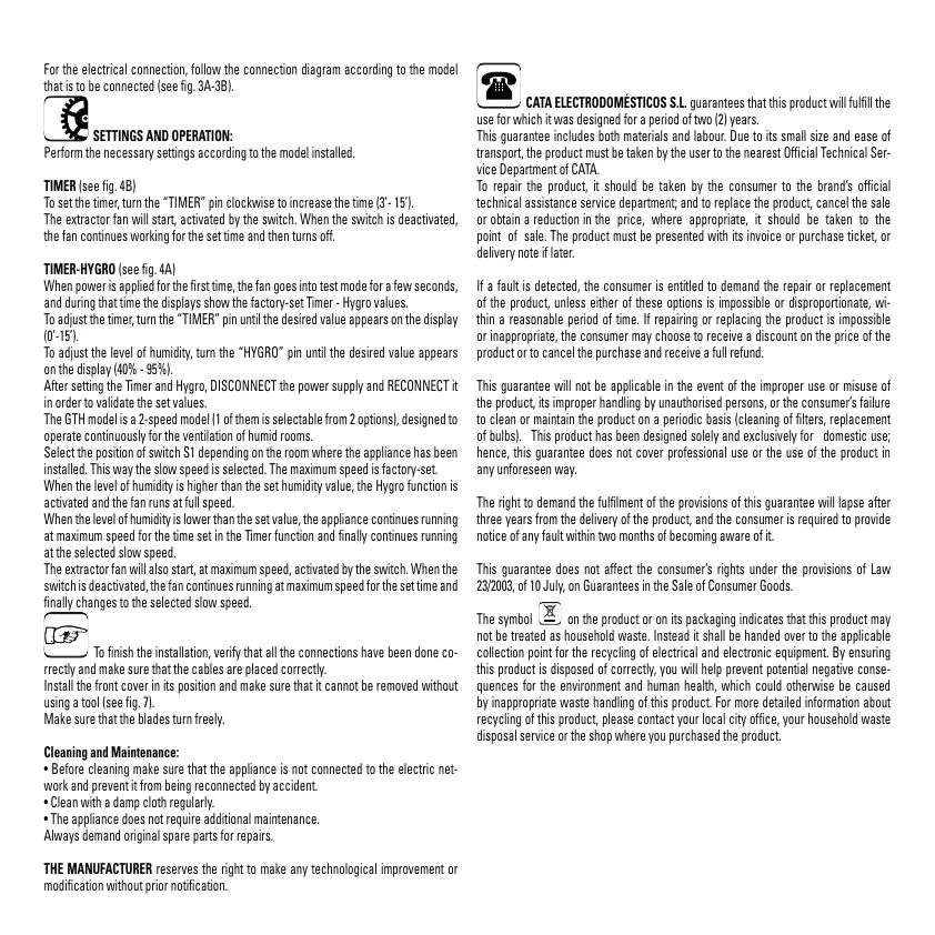 CATA ELECTRODOMÉSTICOS S.L. guarantees that this product will fulfill the