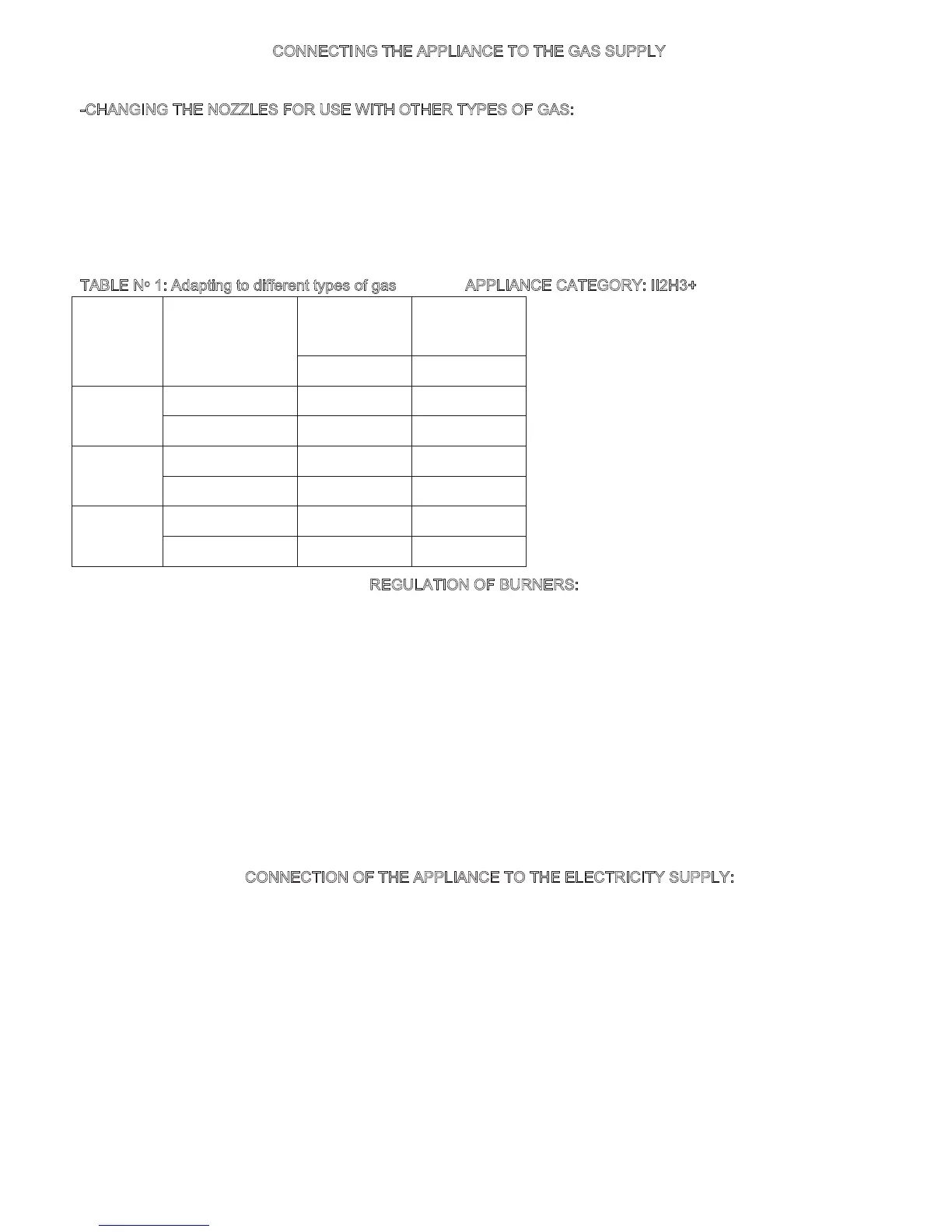 CONNECTING THE APPLIANCE TO THE GAS SUPPLY