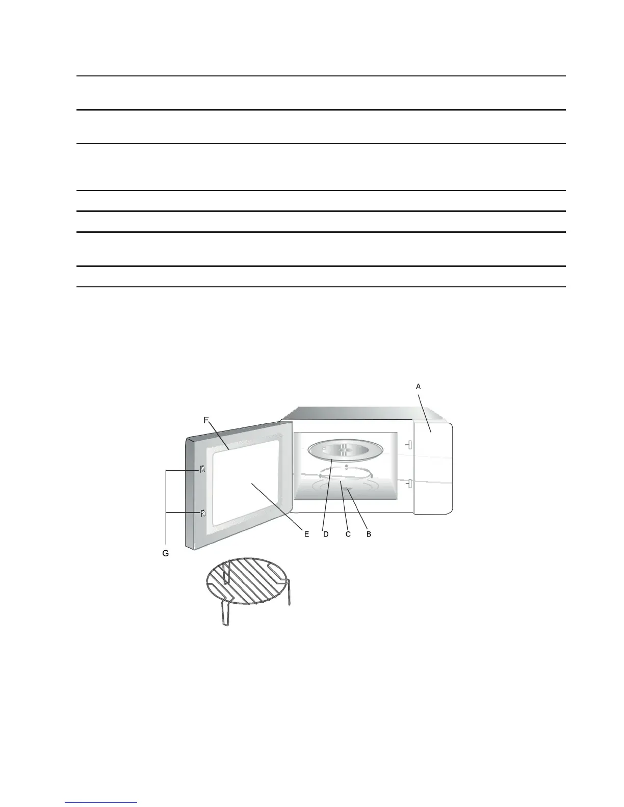 Nomes das peças e acessórios do microondas