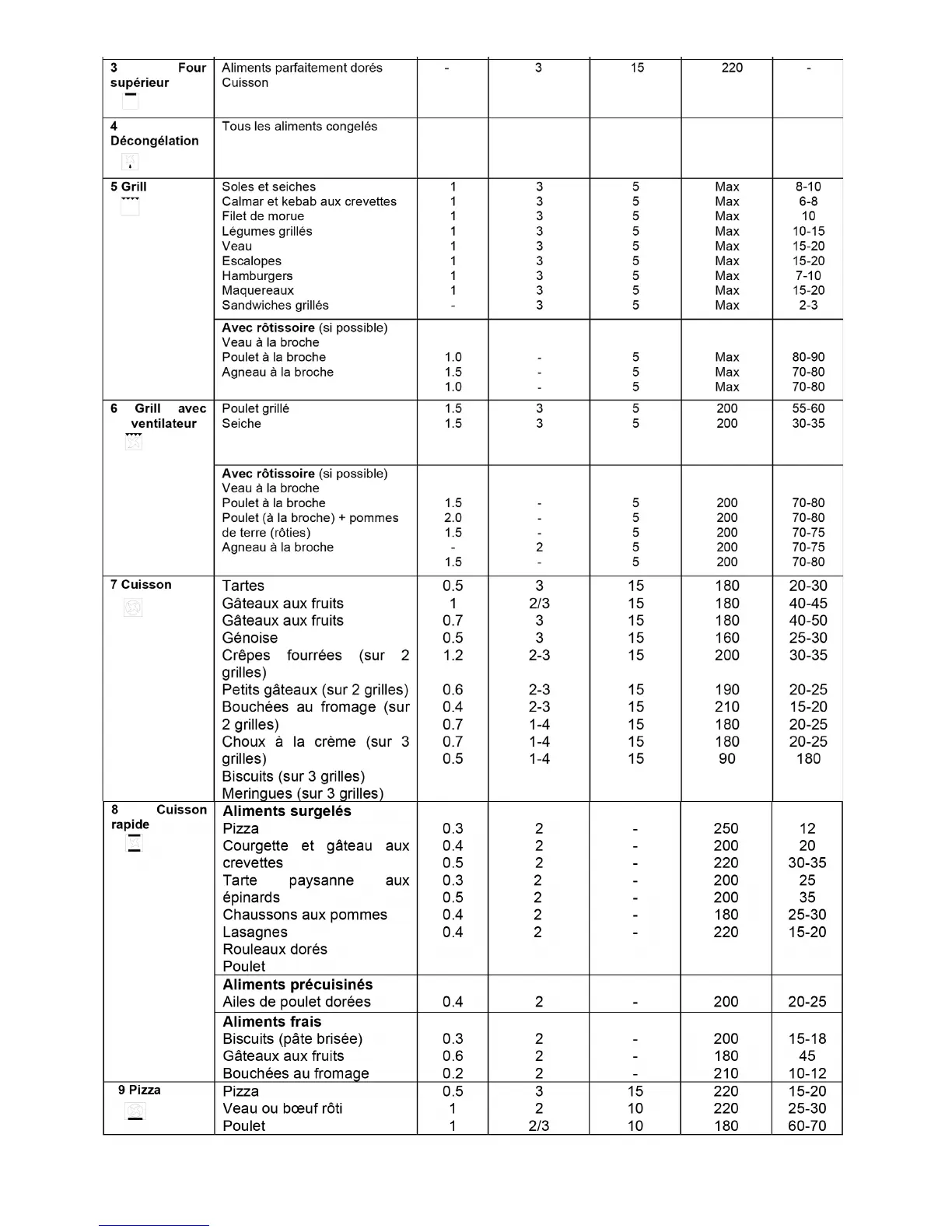 NB : les temps de cuisson sont approximatifs et peuvent varier en fonction des goûts de chacun. Lors de la cuisson au grill ou au