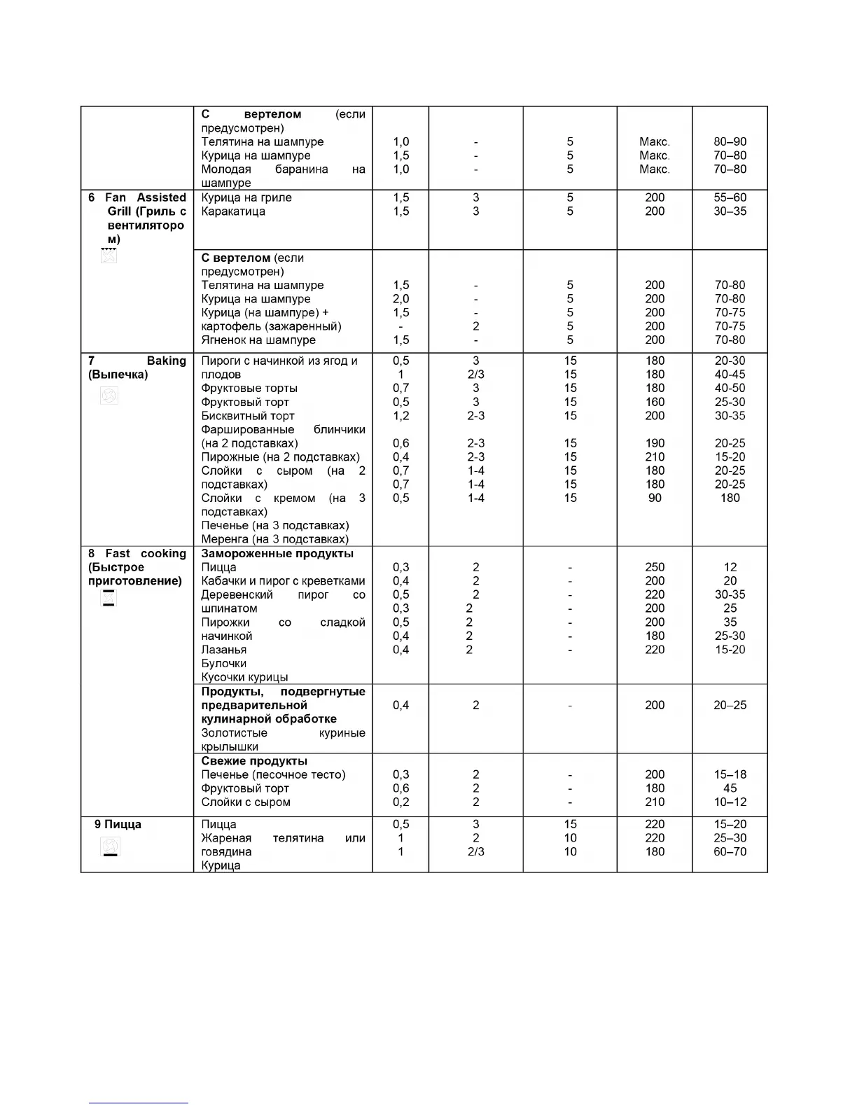 зависимости от личных предпочтений. При использовании режимов гриля или гриля с вентилятором всегда