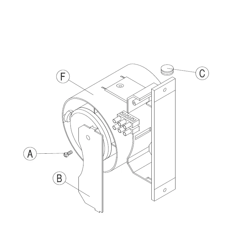 E) Der Abzug (C) wird zwischen den Punkten A und B (Ansaugen und Ausstoßen) montiert und mit Dübeln