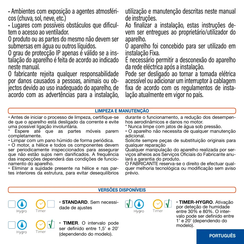 • TIMER-HYGRO. Ativação