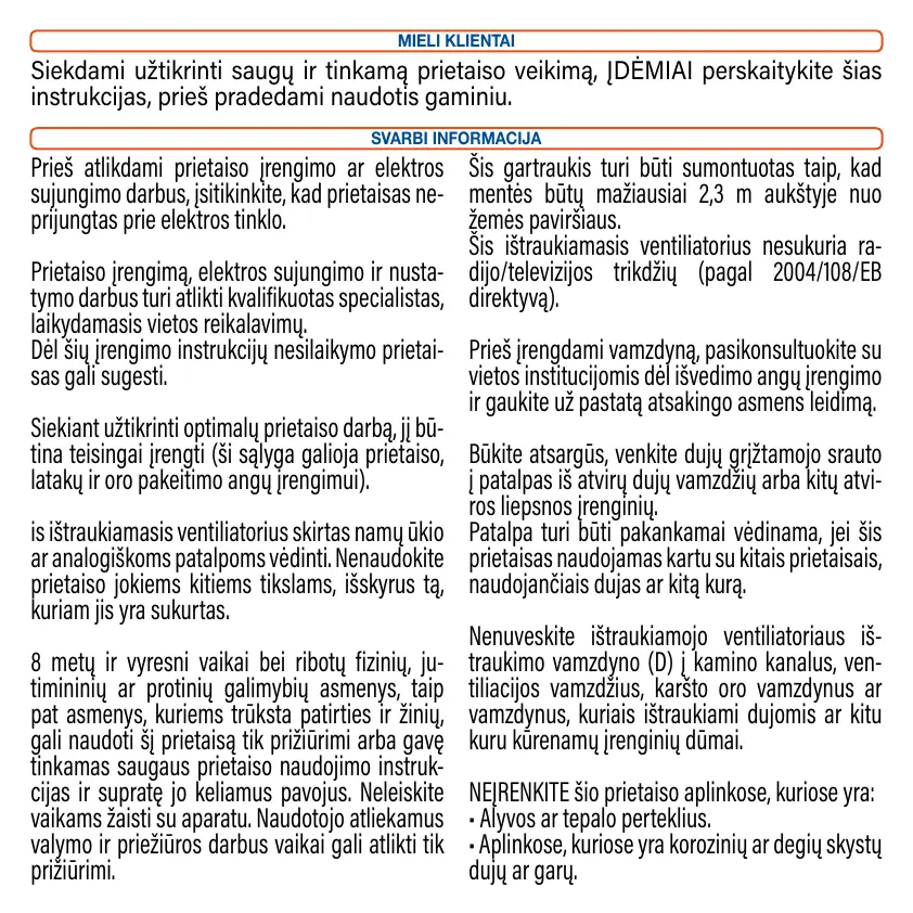ar analogiškoms patalpoms vėdinti. Nenaudokite