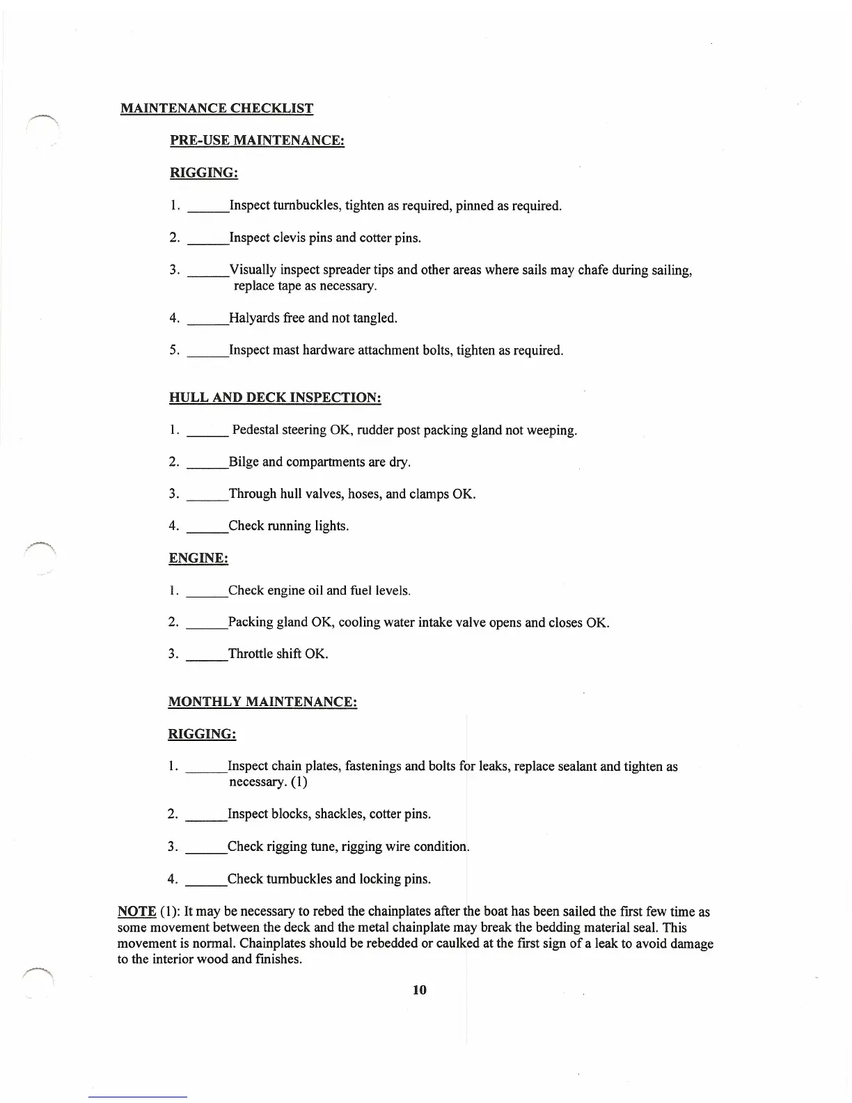 NOTE (1): It may be necessary to rebed the chainplates after the boat has been sailed the first few time as