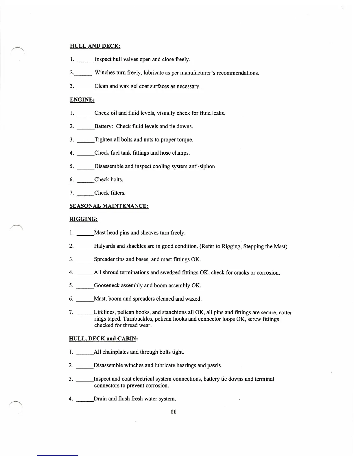 2. Halyards and shackles are in good condition. (Refer to Rigging, Stepping the Mast)