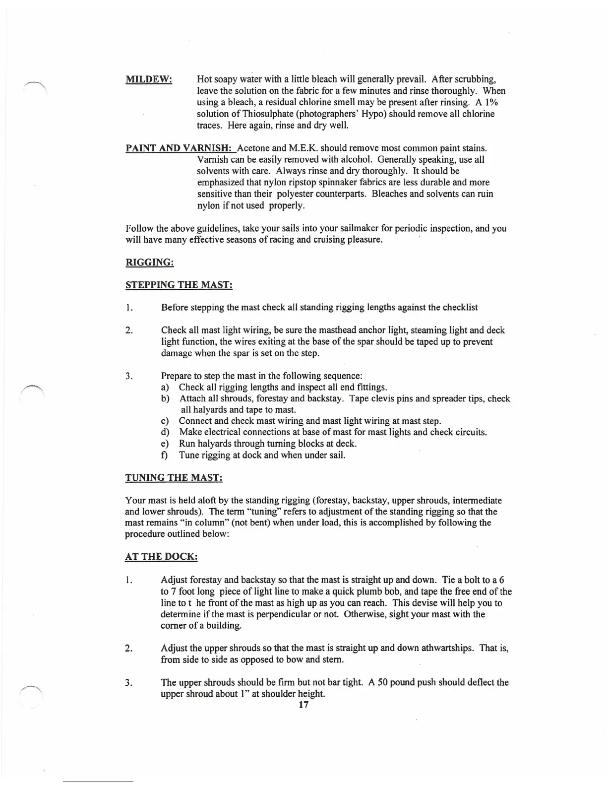 1. Before stepping the mast check all standing rigging lengths against the checklist