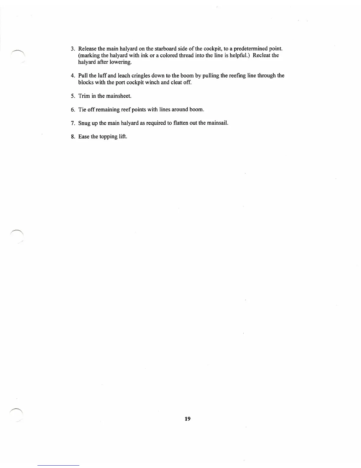7. Snug up the main halyard as required to flatten out the mainsail.