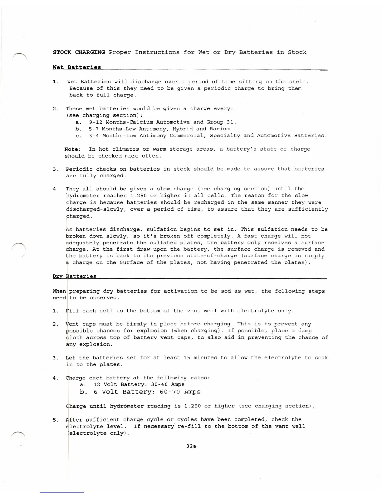 STOCK CHARGING Proper Instructions for Wet or Dry Batteries in Stock