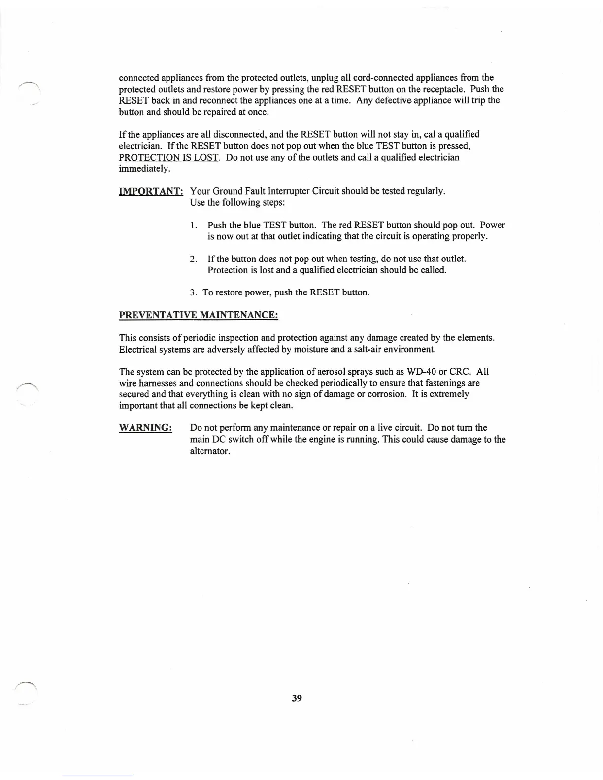 IMPORTANT: Your Ground Fault Interrupter Circuit should be tested regularly.