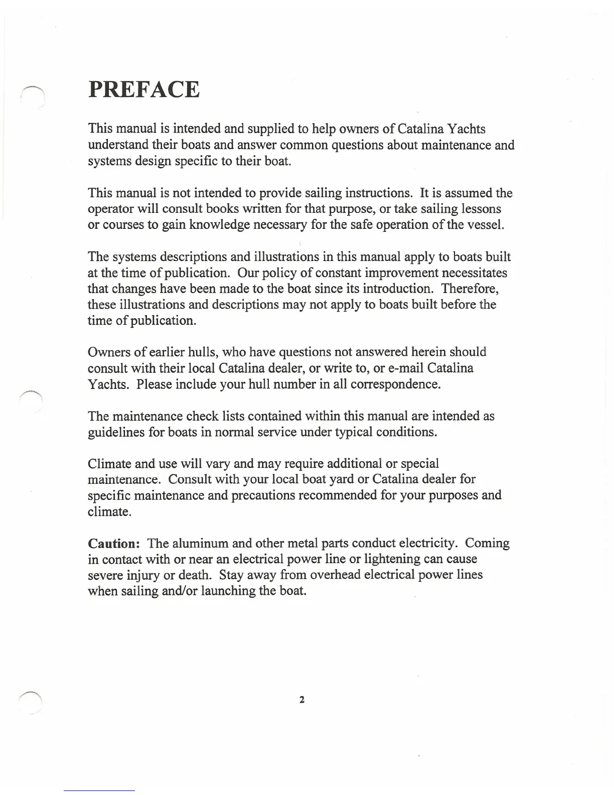 maintenance. Consult with your local boat yard or Catalina dealer for