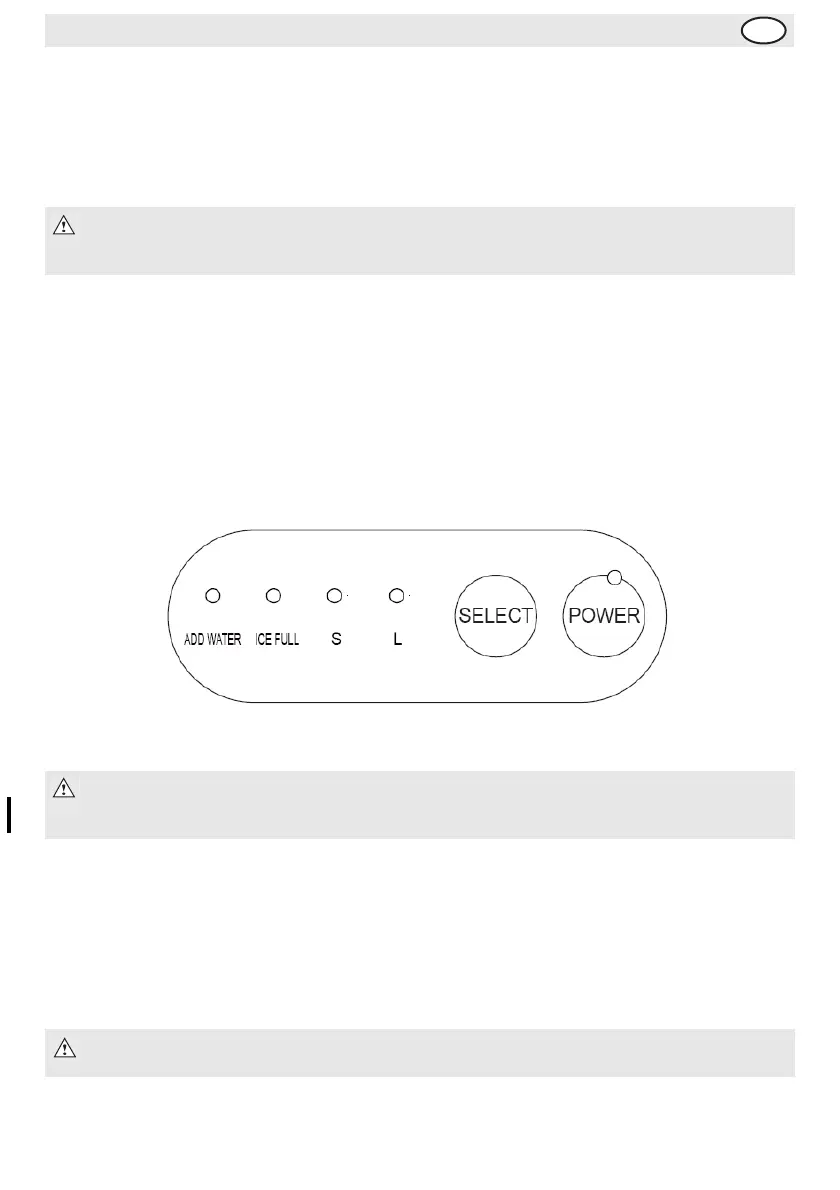 3. Press the ‘SELECT’ button repeatedly to scroll through the ice cube sizes (S=Small, L=Large). Stop