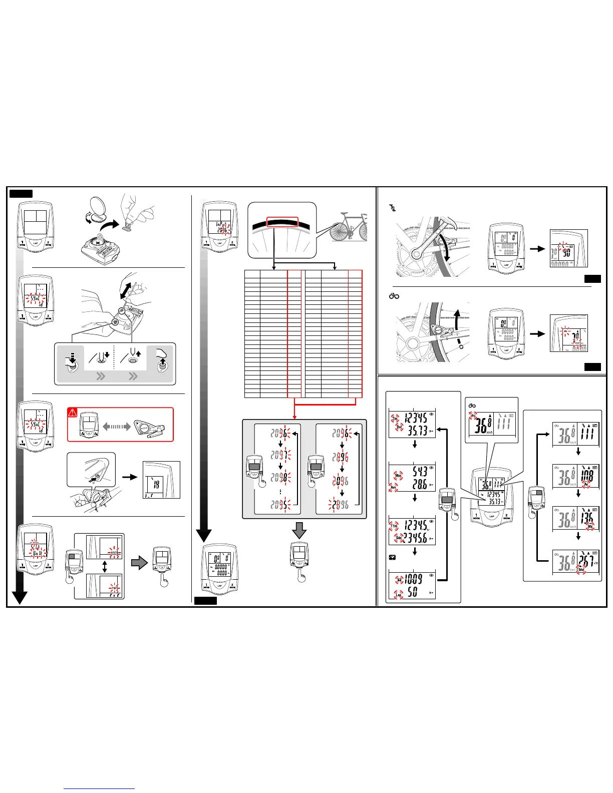Cateye CC-CD300DW - QUICKSTART - Initial Setup and Operation; Tire Size Input; Sensor Test Procedure; Understanding Display Data