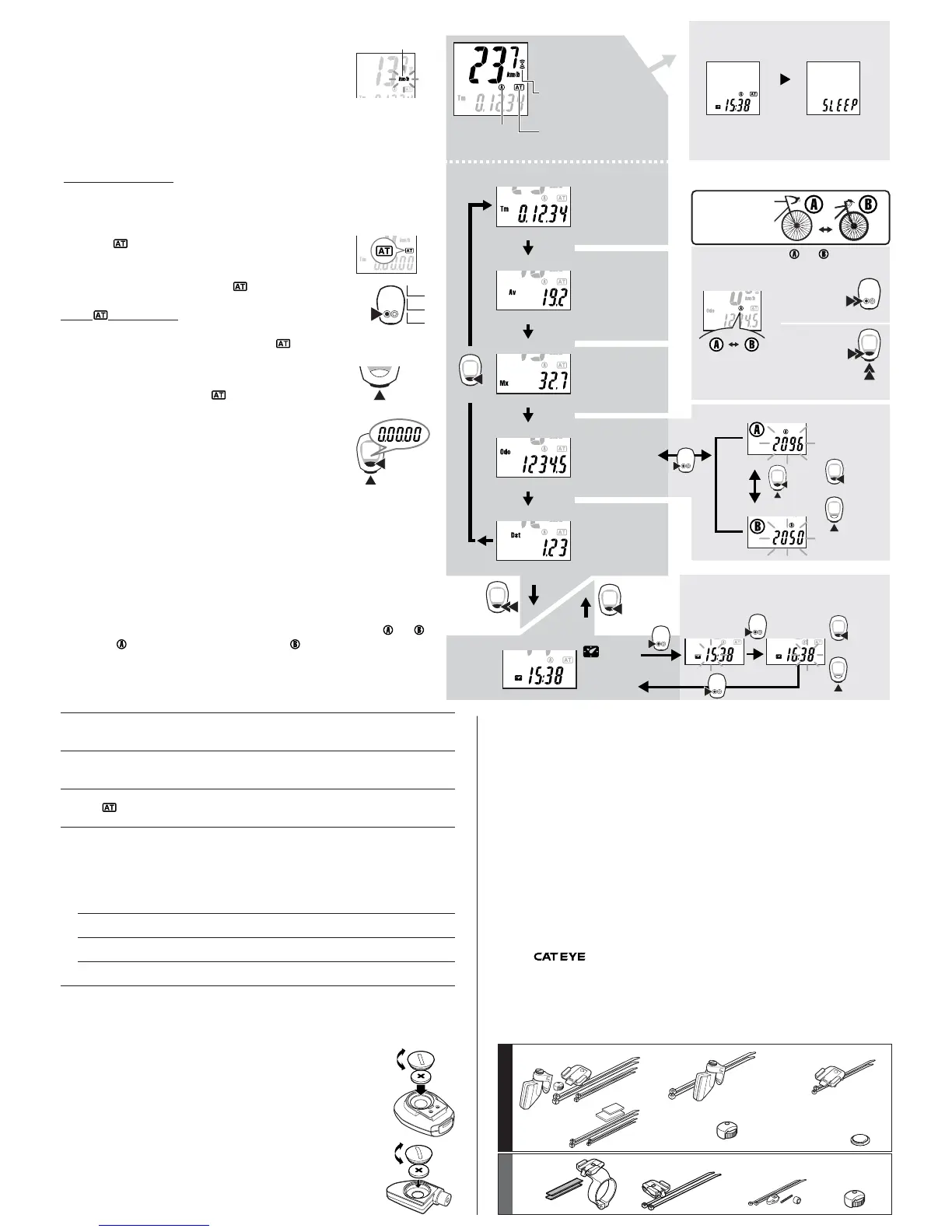 [If the sensor pulse indicator fails to flash, first spin front wheel to align computer with sensor. Indicator