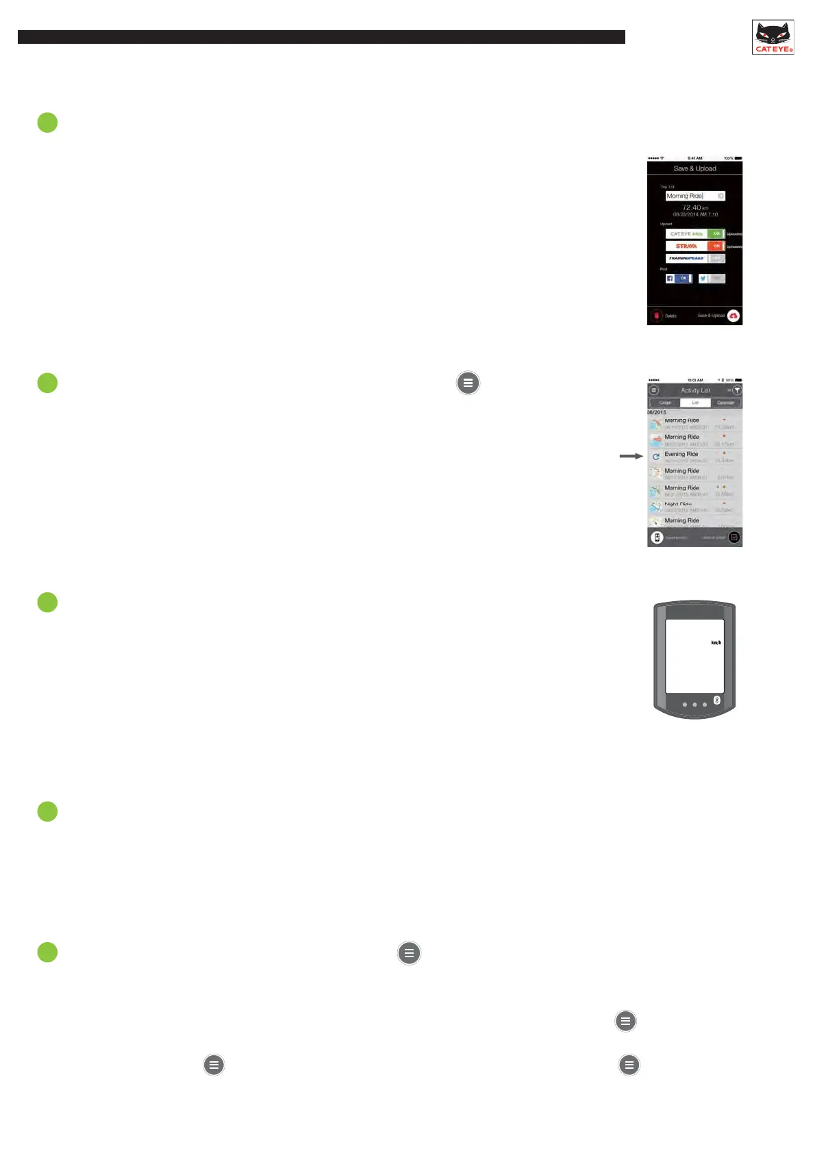 Only ride data that has not been uploaded to CATEYE Atlas, STRAVA, or Training Peaks is displayed.