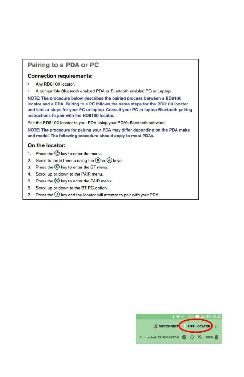 5. Select the pipe locator to pair, when prompted enter the passkey “1234”