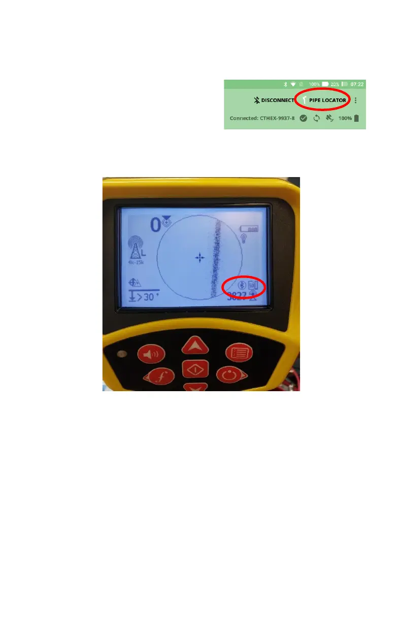 6. The pipe locator will now show the Bluetooth symbol in the bottom right corner.